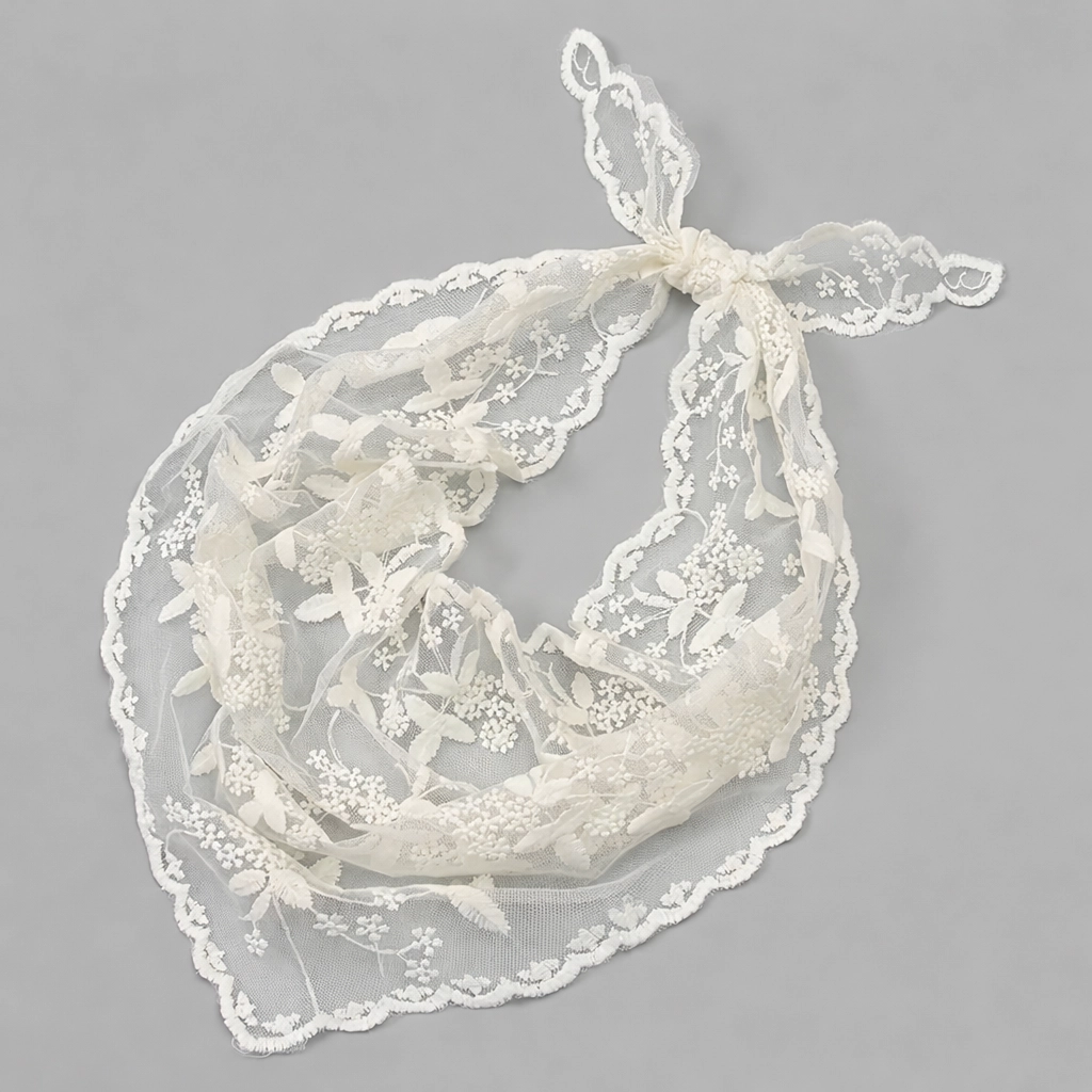 Elegancka koronkowa apaszka / chusteczka na głowę – styl romantyczny