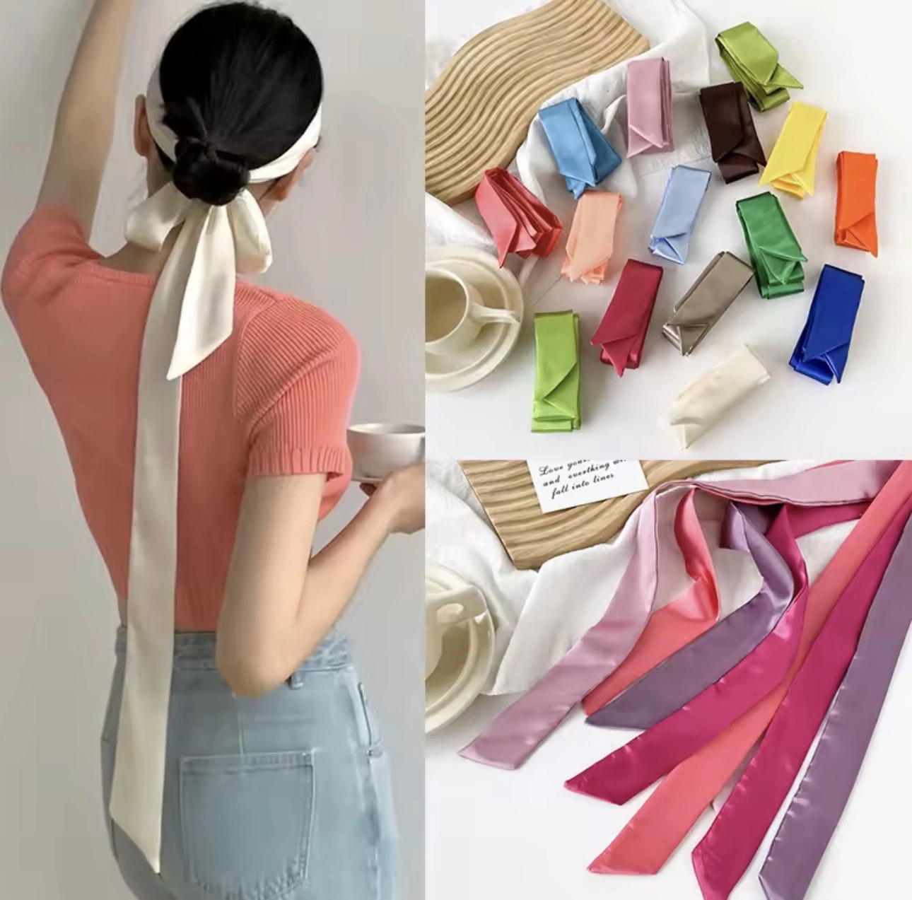 Elegancka cienka apaszka / naszyjnik szalik /wstążka do włosów