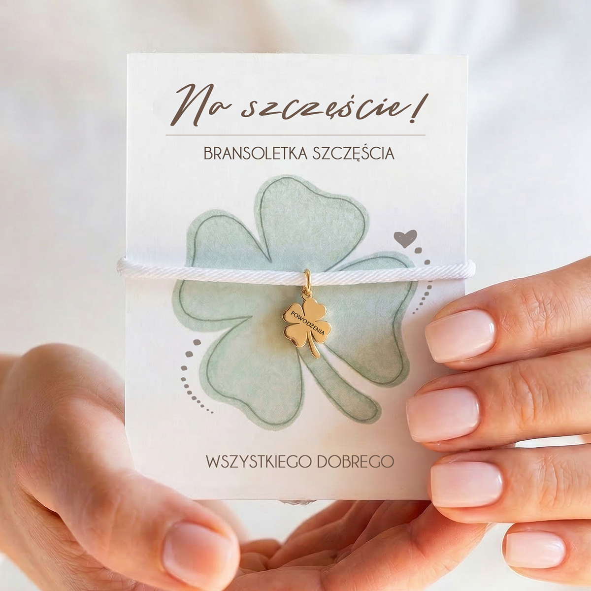 BRANSOLETKA SZCZĘŚCIA - GOTOWY PREZENT Z KARTKĄ Z ŻYCZENIEM WSZYSTKIEGO DOBREGO!