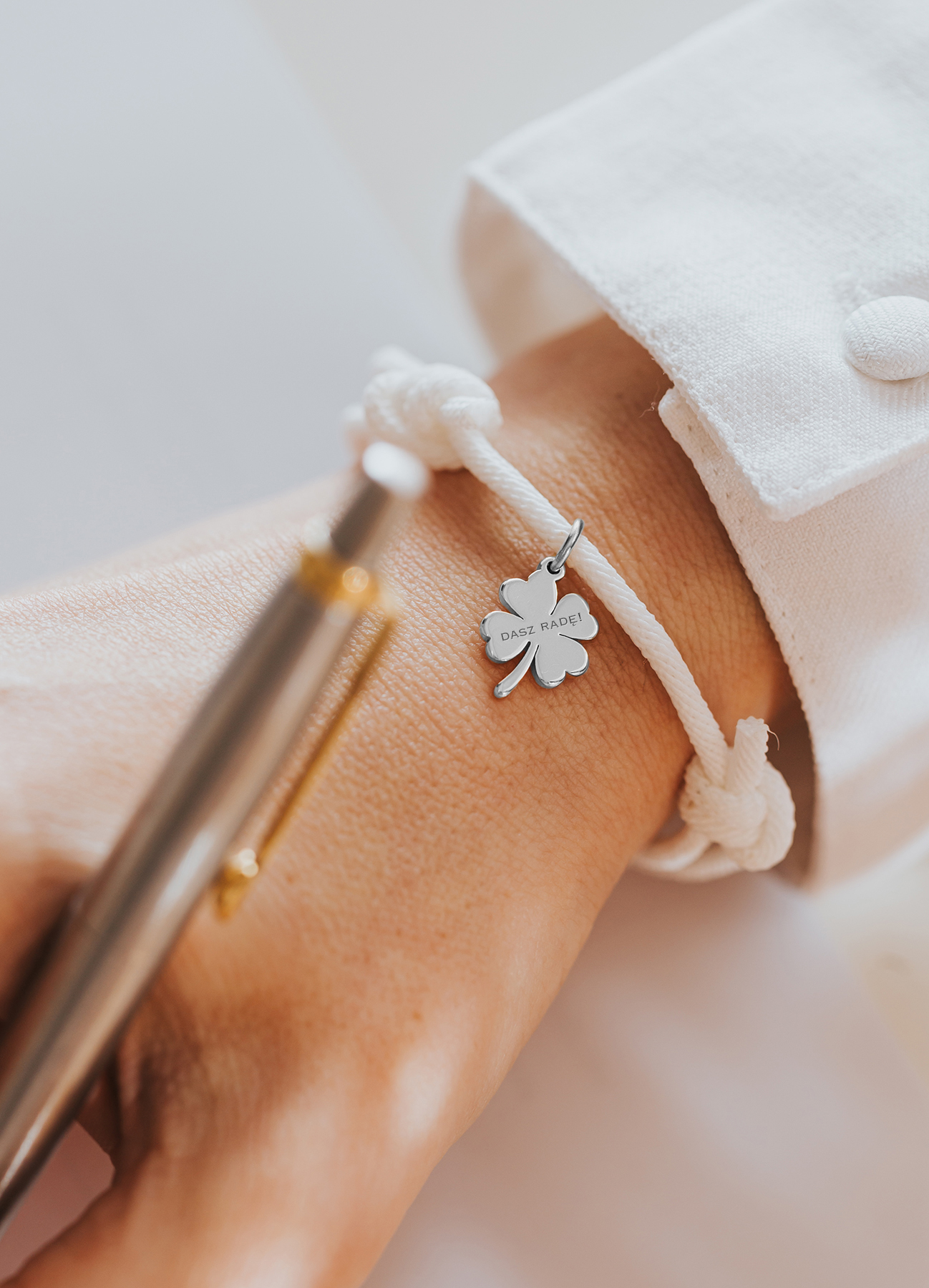 Wyjątkowa bransoletka przynosząca szczęście z koniczynką i GRAWEREM DWUSTRONNYM!