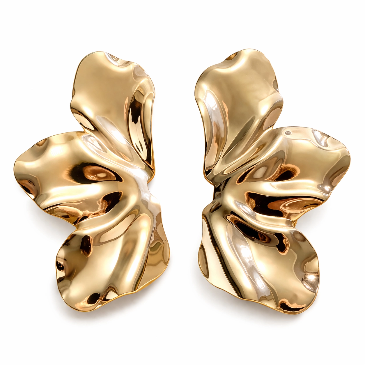 Kolczyki skrzydła listki fale stalowe złote